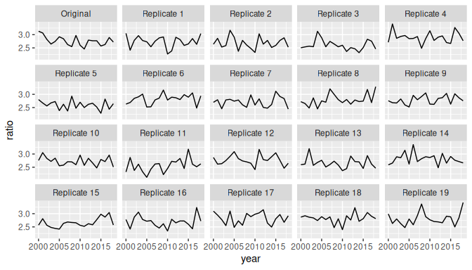 We graph the results and see if the original data looks like it was drawn from the same underlying distribution as the simulated data.
