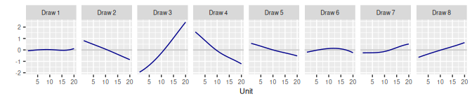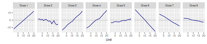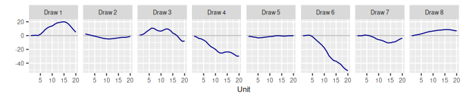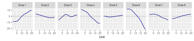 \[\begin{align} \beta_1 & \sim \text{N}(0, \mathtt{sd}^2) \\ \beta_2 & \sim \text{N}(\beta_1, \mathtt{sd\_slope}^2) \\ \beta_j & \sim \text{N}(2\beta_{j-1} - \beta_{j-2}, \tau^2), \quad j = 3, \cdots, J \\ \tau & \sim \text{N}^+(0, \mathtt{s}^2) \end{align}\]