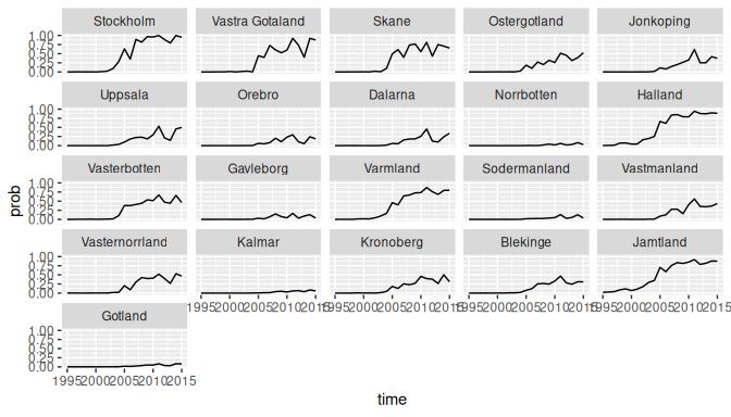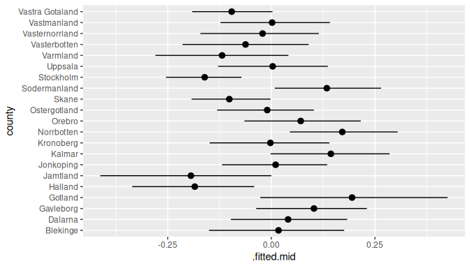 #> 10 county effect Norrbotten 0.17 (0.045, 0.3)
