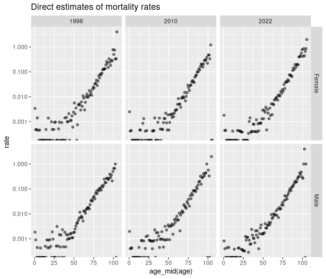 ggtitle("Direct estimates of mortality rates")