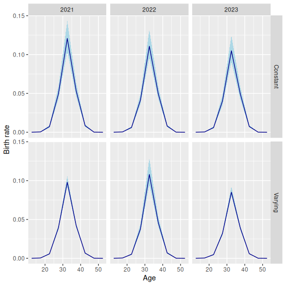 The model assumes that births for women aged 35+ in 2022 were subject to an unusual degree of under-reporting. The results reflect that assumption.